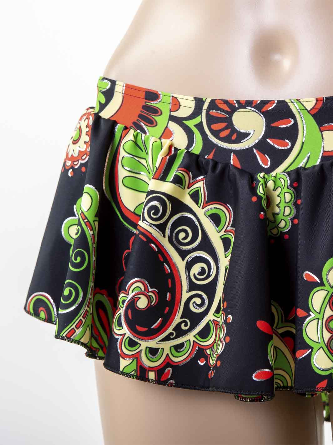 Patterned lycra circle skirt with a pop look in different patterned variations with belt at the waist for roller and ice skating training.
